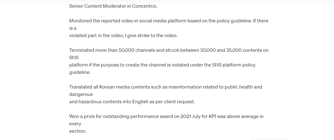 - Senior Content Moderator, Concentrix