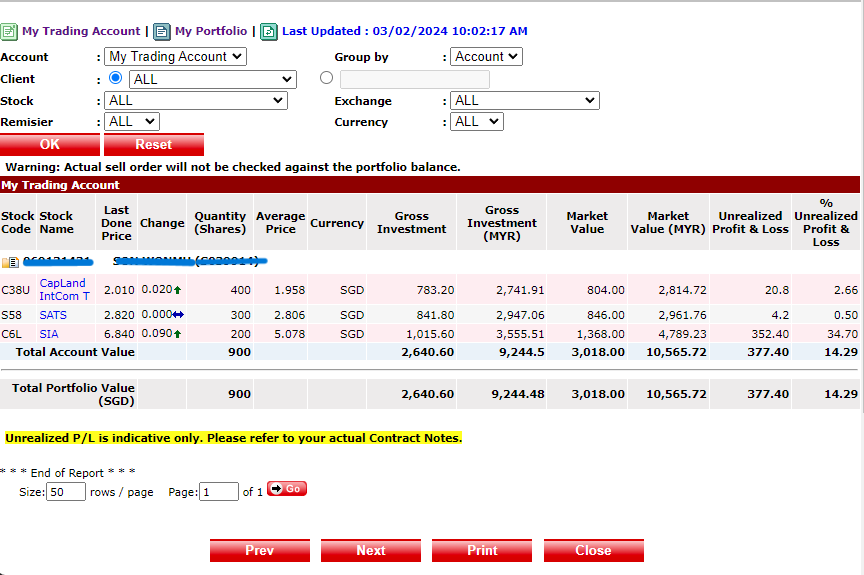 Unrealized earnings (Singapore dollar): 377.4 SGD