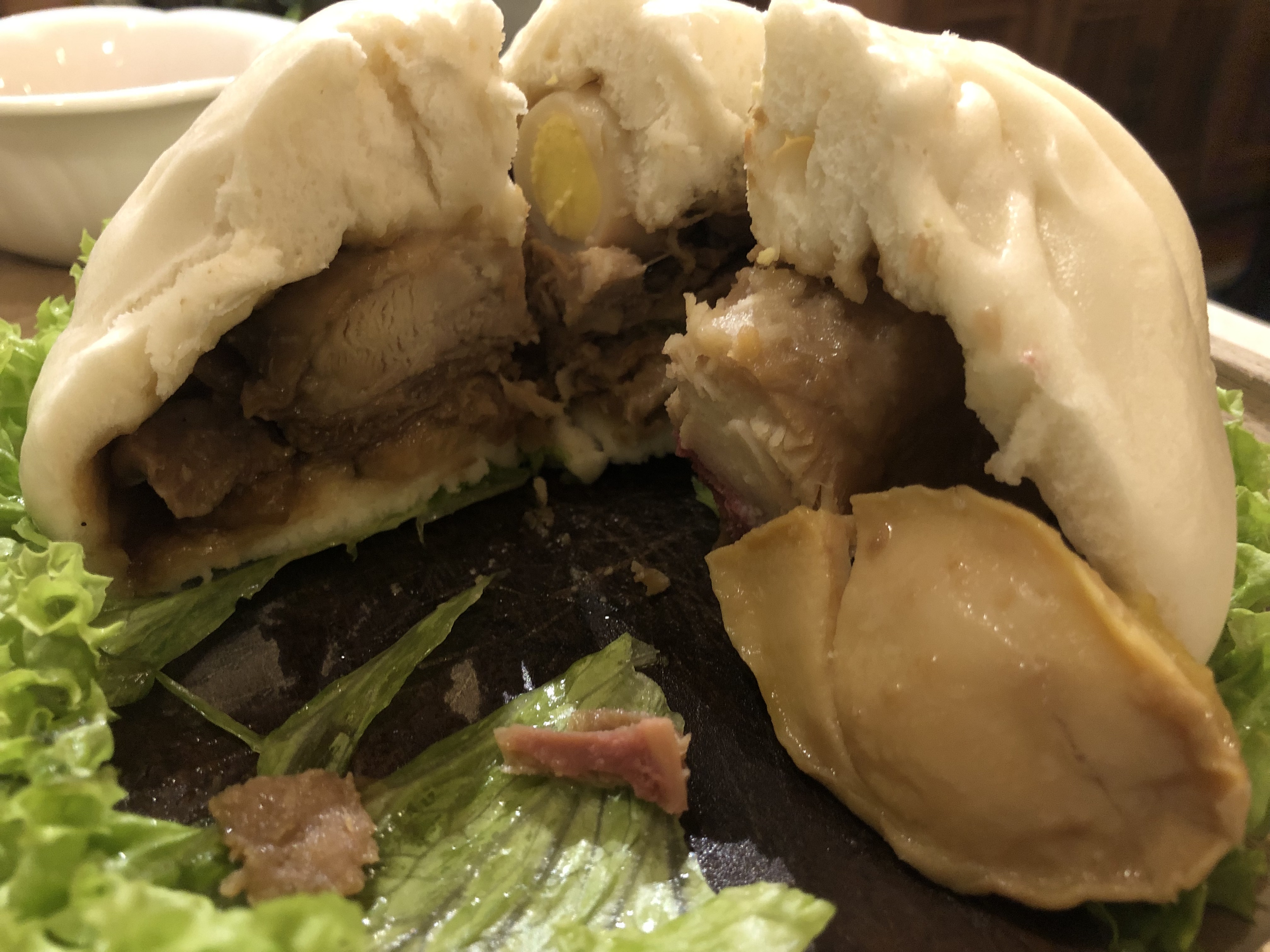 진짜 이건 대박인게 찐빵에 전복, 소세지, 삶은 달걀, 치킨, 돼지고기 등등 넣은 찐빵 보셨나요? 정말 푸짐했습니다. 이건 정말 못 잊을 거 같은 맛이에요!