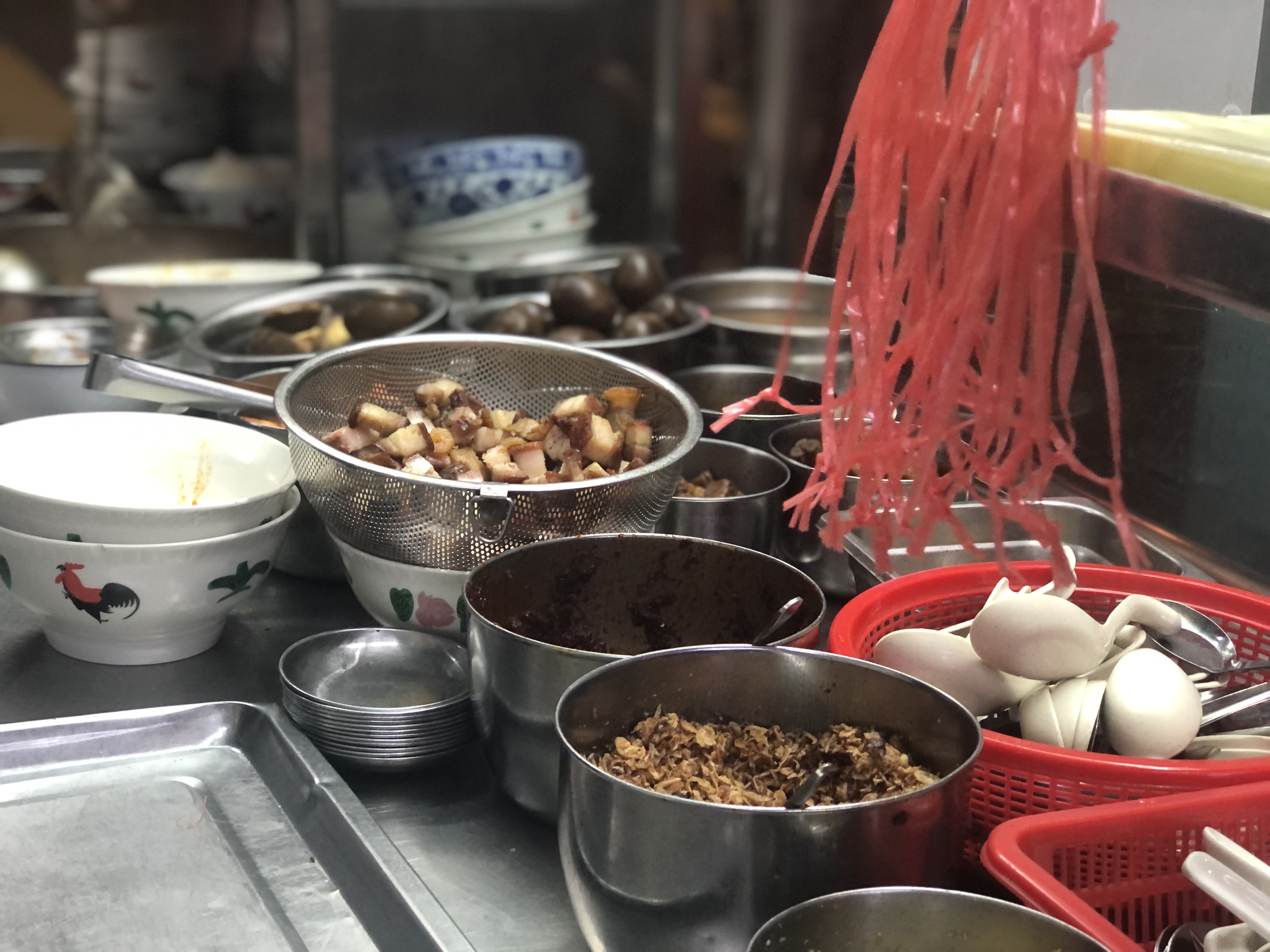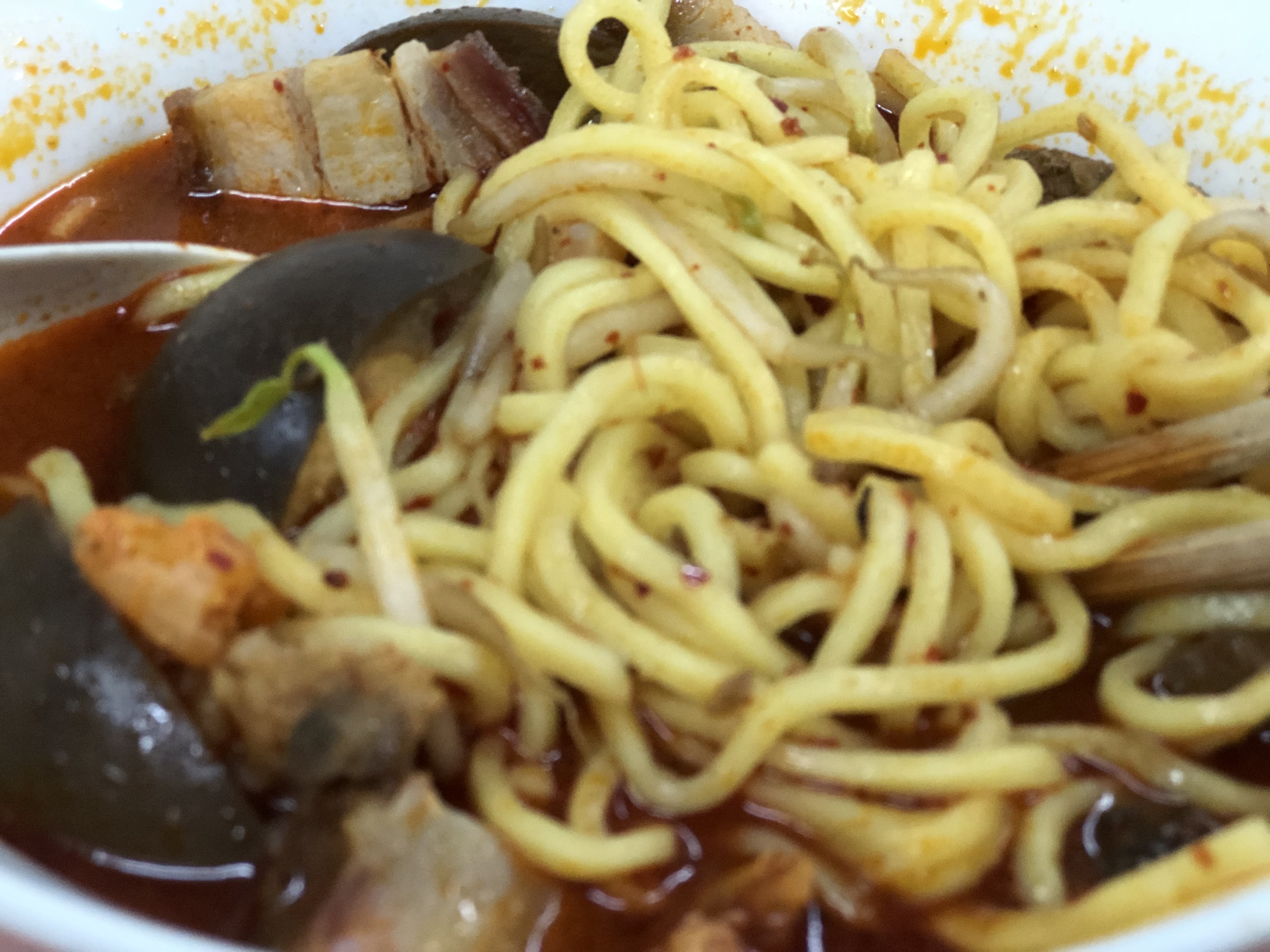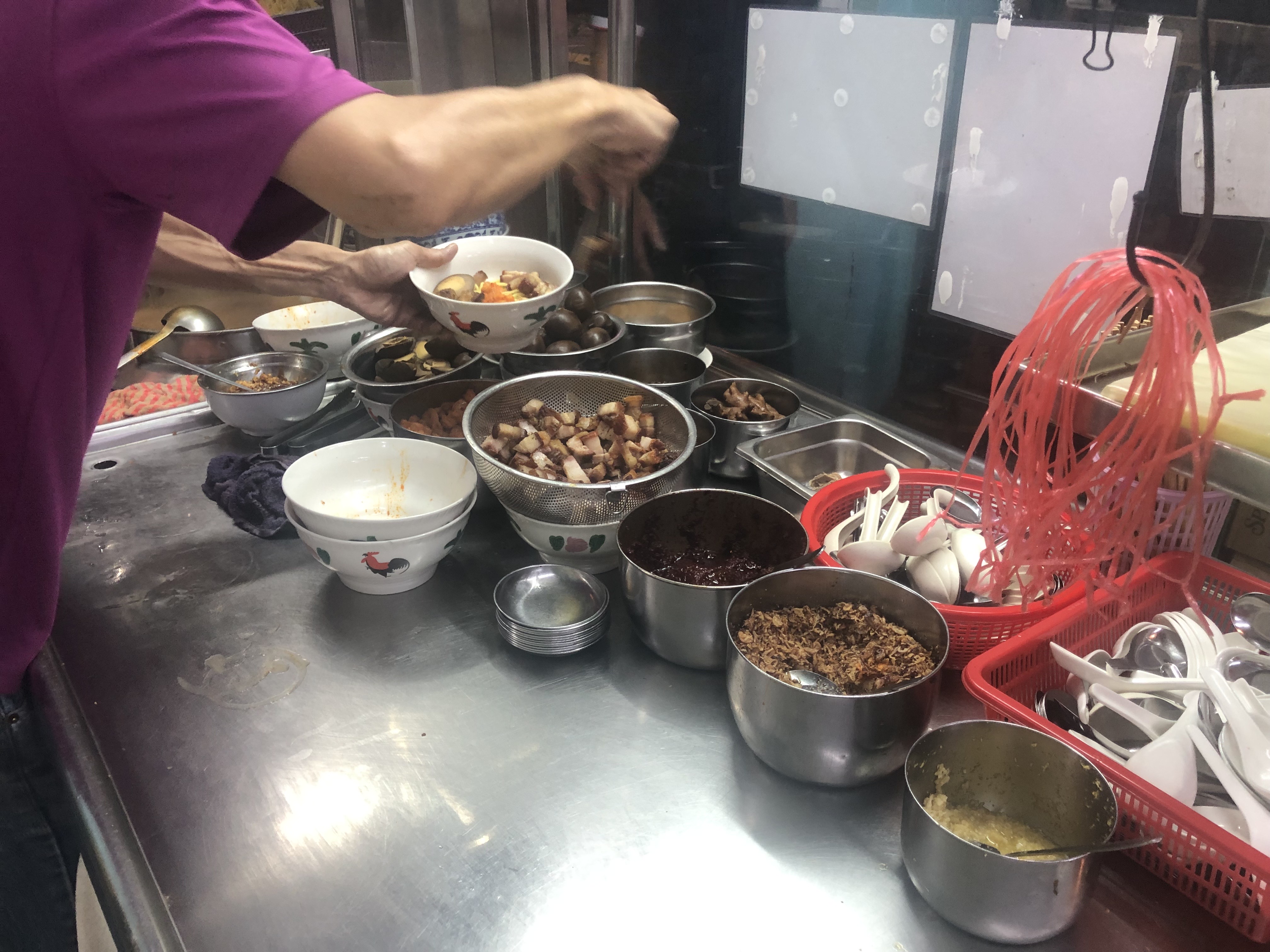 온갖 토핑이 올려진 Hokkien Mee를 보시고 있는데요. 돼지고기, 삶은계란, 치즈소시지, 새우, 멸치등등 지금 이 사진만 봐도 배가 고프네요.