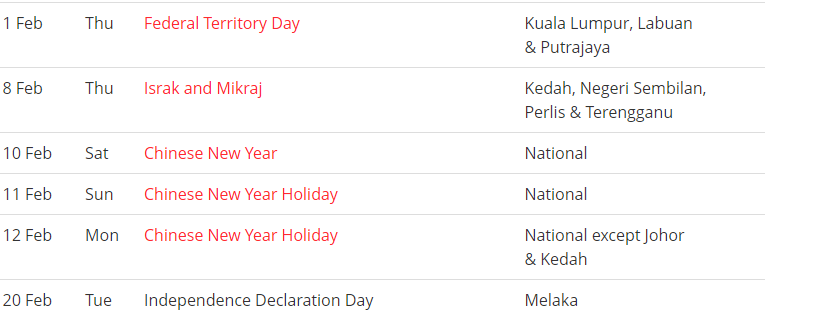 그렇다면 말레이시아의 공휴일을 정리해둔 사이트가 따로 있을까요?
