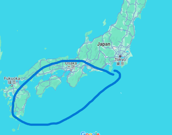 규슈섬의 서쪽부터, 시코쿠, 시즈오카에 이르는 곳을 난카이 트라프라고 합니다. 이쪽 지대는 100년에서 150년에 한번씩 거대한 지진이 온다던데 100년이 지난 지금 현재까지도 저쪽에는 큰 지진이 없었다고 합니다.