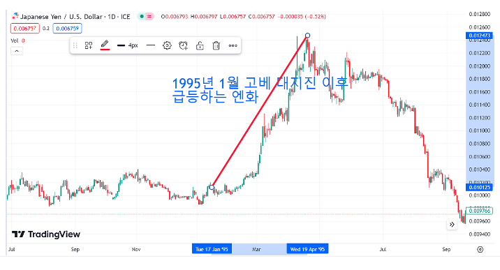 2. 해외 자금의 유입: 일본 기업이나 보험사들은 해외에 많은 자산을 보유하고 있습니다. 대지진과 같은 재난이 발생하면, 복구와 재건을 위해 이 자산들을 엔화로 환전해야 하는 상황이 발생할 수 있습니다. 이 과정에서 대규모 자금이 일본으로 들어오게 되고, 이는 엔화 수요를 증가시켜 강세로 이어질 수 있습니다.