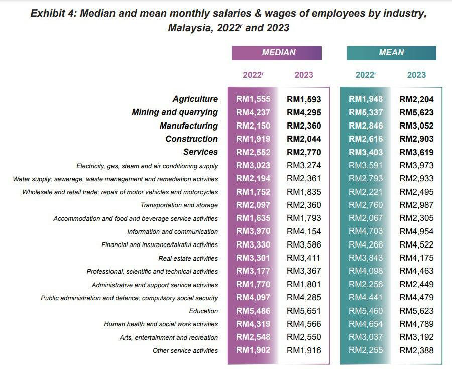 그럼 2022년과 2023년에 말레이시아에서는 어떤 산업분야가 높은 임금을 받았을까요?
