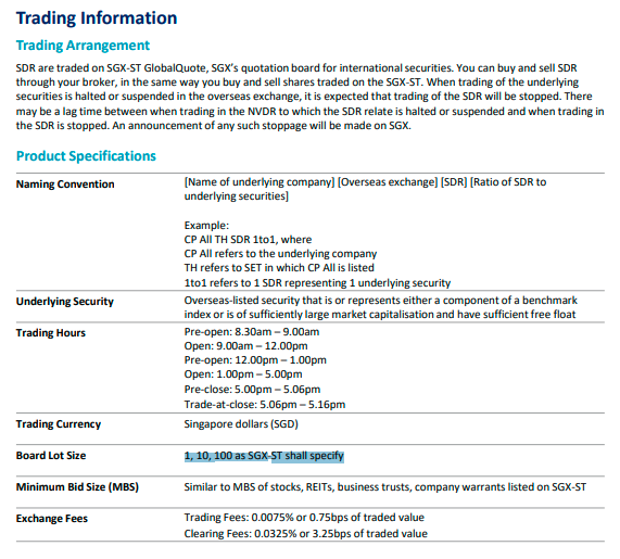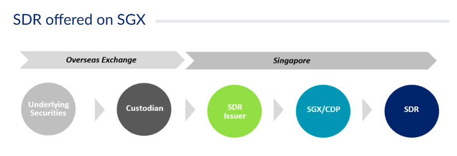 3. SDR 발행인은 싱가포르 증권거래소(SGX-ST)에서 거래할 수 있도록 SDR을 발행하며, SDR과 원래 주식간의 전환을 지원합니다. (전환율은 개별 주식마다 다름) SDR은 SGX-ST시장 규칙에 따라 거래되며, SDR의 조건과 세부 사항은 프로그램 공시 문서에 명시되어 있습니다.