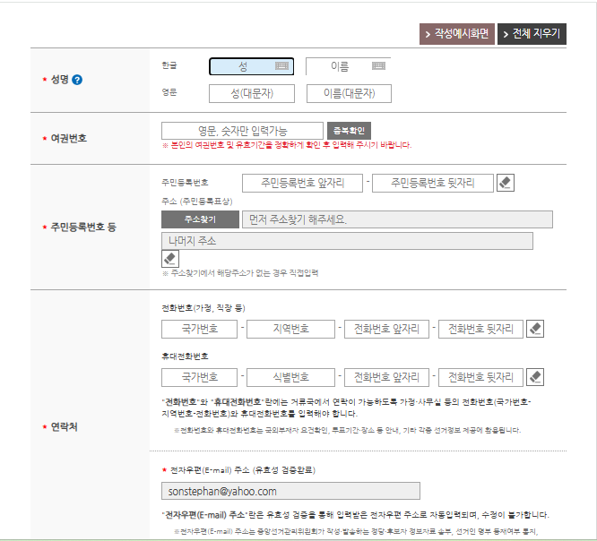 저는 대사관 갈 시간이 없어서 인터넷에서 신청을 해보겠습니다.