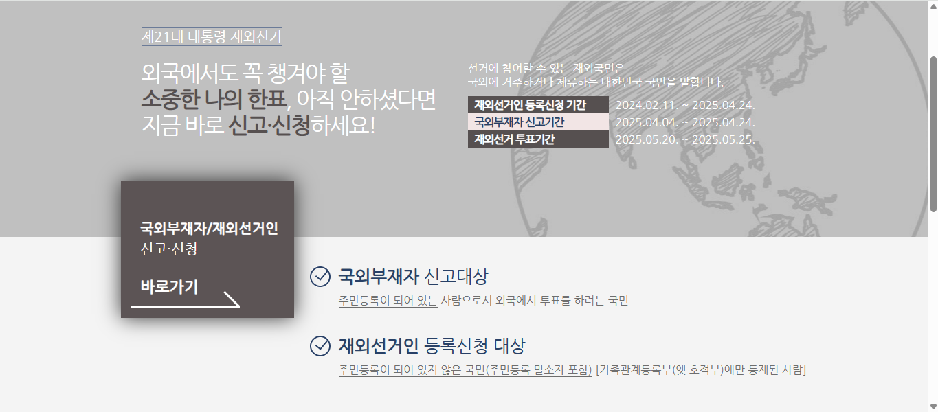국외부재자 신고기간: 2025.04.04. ~ 2025.04.24.