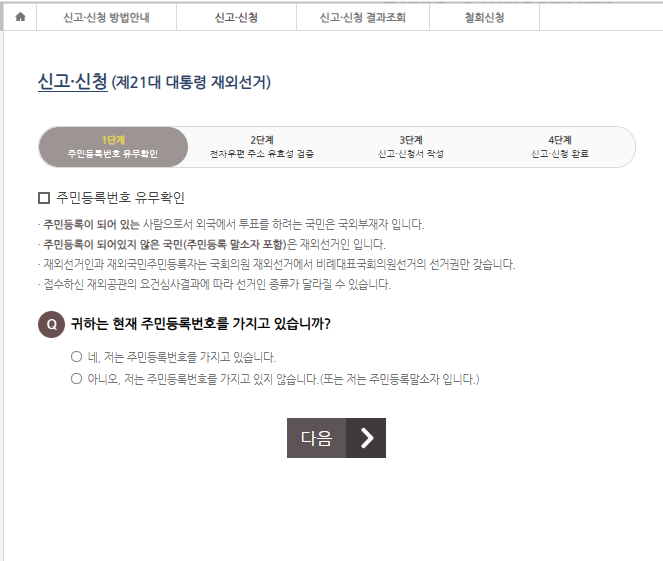 1) "예" 저는 주민등록번호를 가지고 있습니다"에 체크해줍니다.