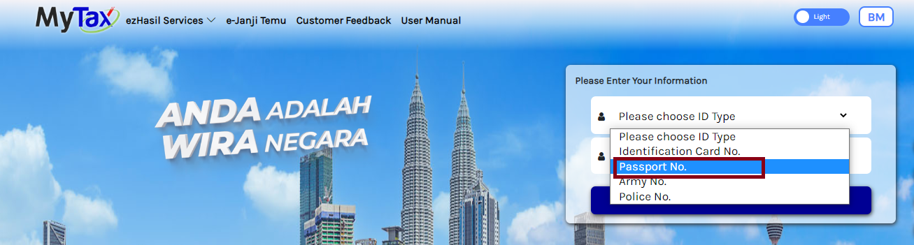 Oh! For your information, the important thing here is that foreign workers, who have been paying 30% tax for the first six months, must carry their passports and go to Hasil LHDN office (Malaysian National Tax Service) to get a PIN number. You can log in after receiving the PIN number there.