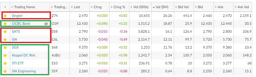 오늘은 증시가 대체적으로 좋네요. :) 오늘이나 좀 더 떨어질 때 SATS에 200주 더 투자할 계획입니다. :) 싱가포르는 매번 느끼지만 인프라 주식, 은행주에 좀 탄탄한 거 같아요. 그럼 5시에 또 뵙겠습니다. :)