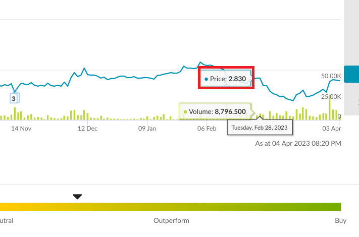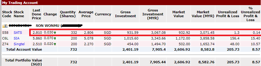 유상증자를 노리고 딱 2.84싱가포르 달러에 샀고 2.2$에 32주를 더 샀으니 그것에 대해서 또 평단가를 낮출 수 있다는 계산하에 매입했습니다. 그리고 전문가들의 컨센서스를 봤을 때도 3.185싱가포르 달러를 목표주가로 세팅을 해놓았고 주당 2.84싱가포르 달러에 사도 수익이 날 수 있을 거라고 확신을 가졌기 때문에 바로 월급이 들어오자마자 질렀습니다. ㅎㅎㅎ