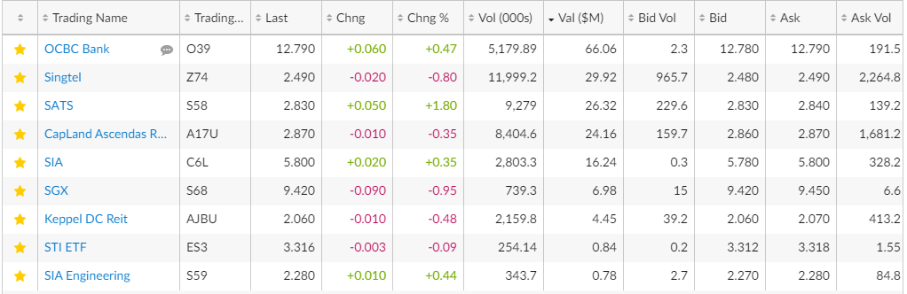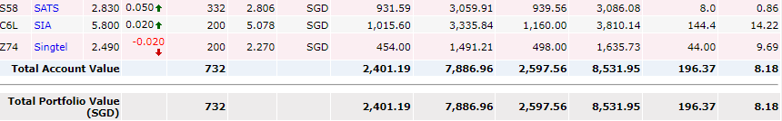 오늘의 싱가포르 주식은 상승세를 이어 나갔으며 제가 투자한 종목들도 전부 호조세를 띄었습니다.