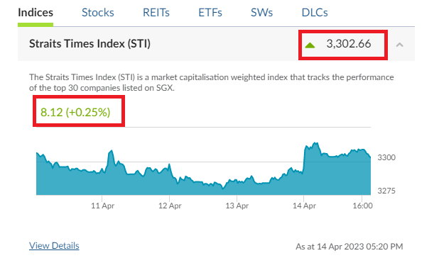 오늘은 4월 14일이고 방금 싱가포르 주식 장이 마감했는데 오늘은 3302.66 포인트로 상승마감했습니다.