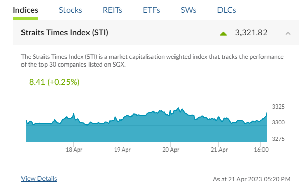 | 4월 17일 SGX (싱가포르 증권거래소) 증시현황 보고서 (1) | 2023.04.18 |
