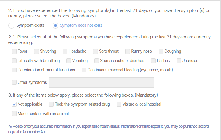 You must enter your health status in this column. Please write down your health status honestly ^^ I've been in Malaysia all along and I didn't have any symptoms of COVID-19