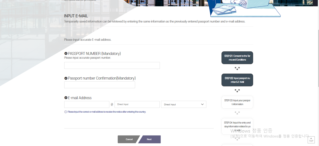 3. Enter passport number and email