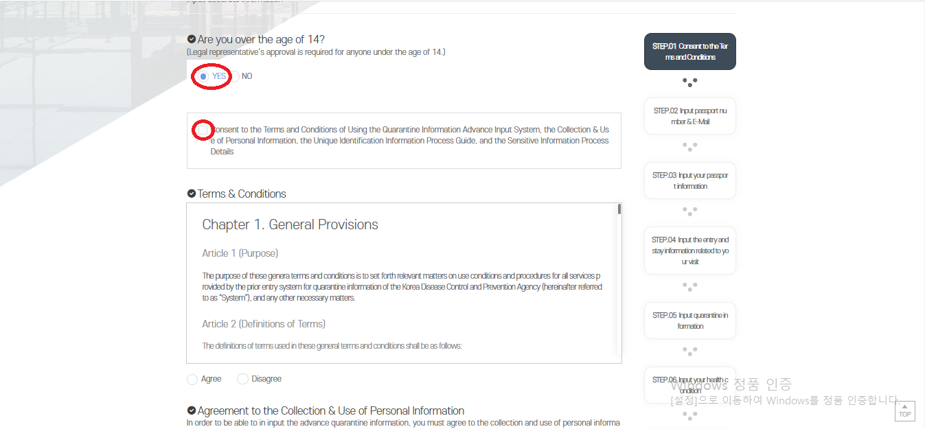 Click on "I agree to the terms and conditions of the quarantine information pre-entry system, the consent form for personal information collection and use, the guidance on the processing of unique identification information, and the consent form for sensitive information processing." :)